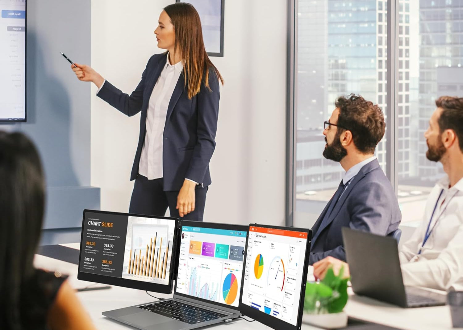 TriView is the ultimate solution for hassle-free multitasking on the go. Instantly transform your laptop into a triple-screen setup with no tools, no drivers, and zero frustration—just plug and play via USB-C or HDMI. Its lightweight, foldable design makes it easy to carry wherever you work, study, or travel. Whether you're managing Zoom calls, documents, and emails at once or switching between creative tools, TriView keeps your workflow seamless, organized, and clutter-free. Compatible with most laptops and operating systems, it’s productivity made portable.